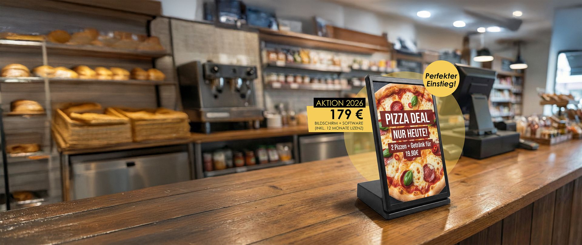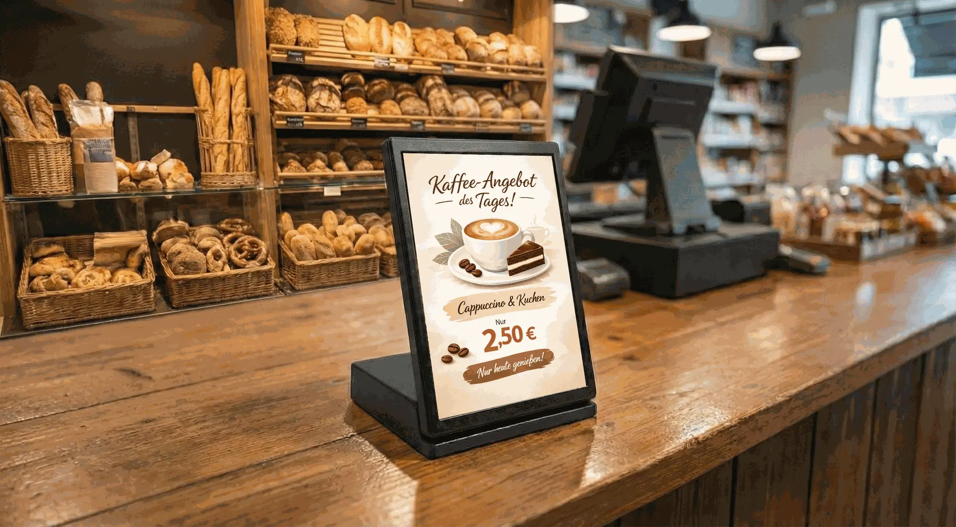 Ob auf der Verkaufstheke in der Bäckerei oder Metzgerei, im Lebensmitteleinzelhandel oder in der Gastronomie – Signage Lite ist der ideale Einstieg in die digitale Kundenansprache.
